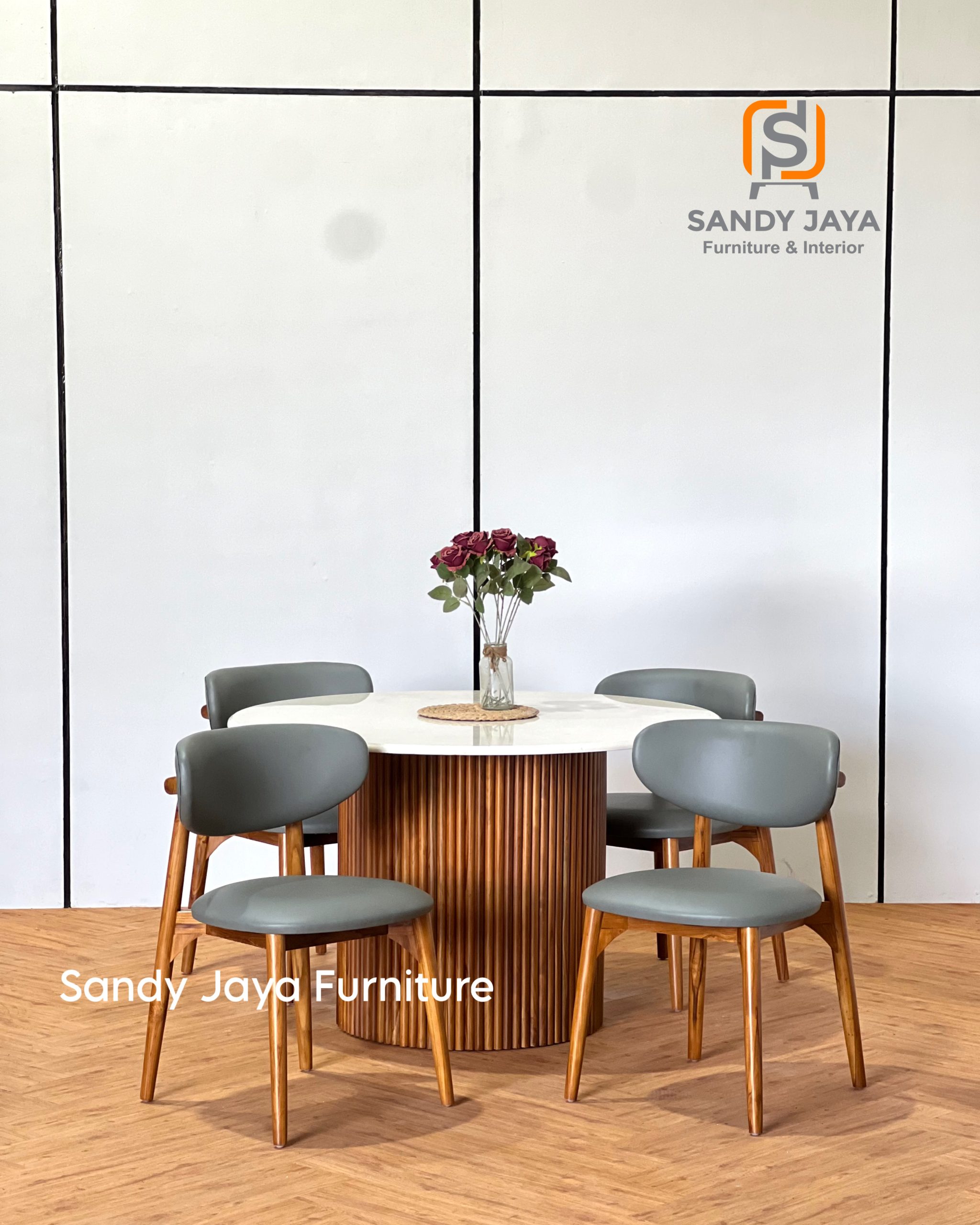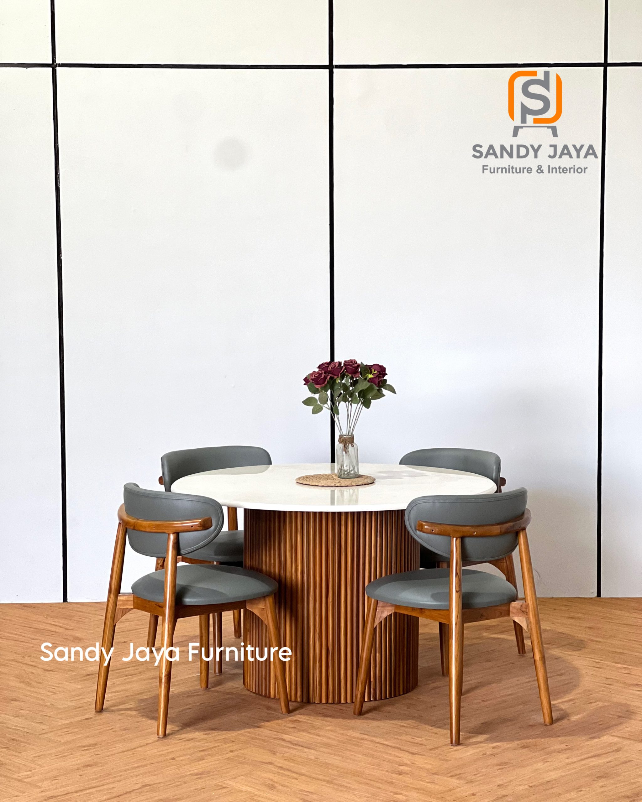 Meja Makan Bulat Marmer Cream SJF-SKMM 026